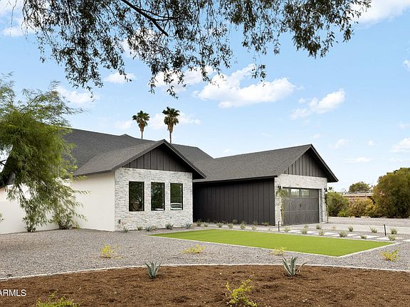 This stunning luxury modern farmhouse full comprehensive rebuild features 4 bedrooms, 3 baths, 2901sqft, and a 2-car garage in the main house. In addition, the expansive .6 acre lot also has a 1 bed, 1 bath, 824sqft detached casita that underwent a stud-up remodel. As you step inside, you'll be impressed by the quality of workmanship and designer's touch throughout the home. The entirety of the home boasts 10ft ceilings and an open living concept. The gourmet kitchen highlights high-end appliances, custom cabinetry, and an oversized island bar. The spacious master suite is a true masterpiece, complete with a luxurious bathroom showcasing a European style shower with soaking tub, an oversized dual vanity, and an exquisite custom walk-in closet. The three additional bedrooms are generously sized and offer plenty of room for family or guests. Beyond the stunning aesthetics of this home, it also features built-in speakers, lighting control and blind prewire, Wi-Fi boosters, and many other bells and whistles bringing the homeowner the luxury of automation. Outside, the backyard is an expansive oasis, with a new heated pool, a wraparound RV pull through, a sport court, and a built-in natural gas BBQ area.