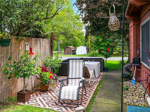 Welcome to this beautifully updated 2 bedroom, 1.5 bath end-unit condo in Ravenna. Recent renovations in 2024 and 2025 make this home move-in ready and low-maintenance, including a new roof, new water softener shared between the four units, new hot water tank, brand new washer and dryer, all new flooring throughout (Lifeproof), fresh paint, updated kitchen with new appliances, cabinets, countertops, backsplash, outlets, and sliding door, and bathroom updates with two new vanities and toilets. The layout offers laundry in the first-floor bathroom, spacious bedrooms, and bright living spaces with an enclosed patio. The end-unit setting provides a large side yard and a partially fenced backyard with privacy fencing. Two parking spots are included, one under a carport and one outside. The HOA fee is $200 per month and covers lawn care, snow removal, trash, exterior maintenance, and building insurance. Owners are advised to carry their own interior insurance for studs-in coverage. The only remaining original features are the tiling in the bathrooms and kitchen, interior doors, and windows, offering an opportunity for future updates to suit personal taste. Conveniently located near local shopping, dining, and major routes, this condo combines comfort, value, and convenience. Complete new central heat and a/c in 2022 with transferable 10 year warranty.