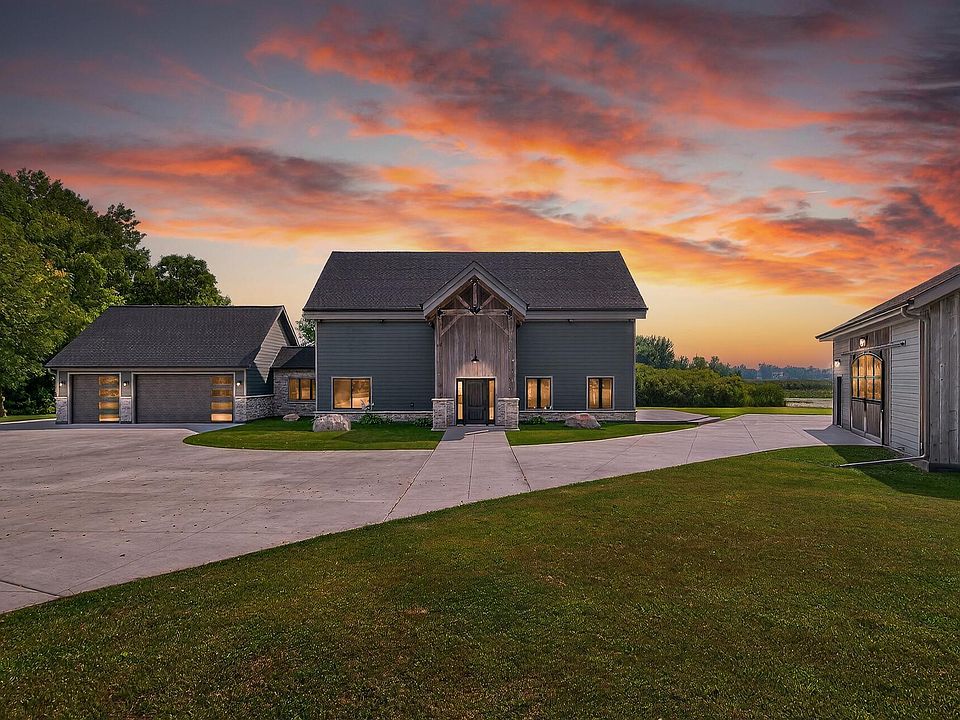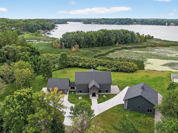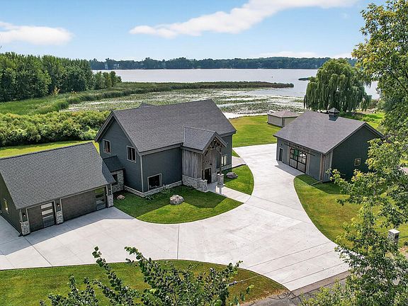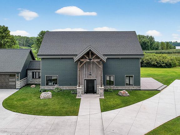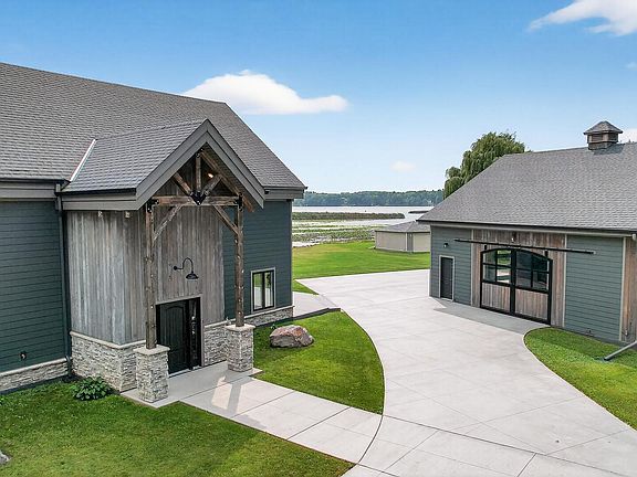 This light, bright, and open 2020 custom-built lake home highlights living all on one level, grand Anderson windows, prefinished Hardie board siding, 32-foot custom post and beam natural cedar wood ceilings, a floating staircase, stone gas fireplace, a 36’ X 36’ electrical and plumbed for water and in-floor heating shed, an oversized concrete driveway, quartz stone countertops, dark stainless-steel LG appliances with a gas range, low-maintenance decking, an attached 3-car garage, and is located at the end of a cul-de-sac road next to mature trees situated on 1.4 acres just 15 minutes west of Plymouth.