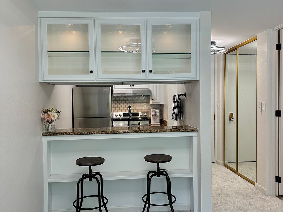 The bright and cheerful Studio has new flooring, new paint and brand new appliances (Samsung) . Featuring a stunning view of a running stream and foliage. Single Balcony where you can enjoy a cup of coffee and listen to the surround sounds of birds.