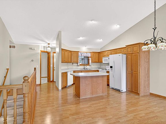Discover the perfect blend of comfort and convenience in this welcoming 2-bedroom, 2-bath townhome, ideally located in a sought-after Brooklyn Park neighborhood just minutes from Maple Grove’s shopping, dining, parks, and trails. Enjoy the ease of low-maintenance living with an association that takes care of lawn care, snow removal, trash, recycling, and exterior maintenance—giving you more time to relax and enjoy your home. Inside, a bright open floor plan greets you with soaring vaulted ceilings, wraparound windows that fill the space with natural light, and a cozy gas fireplace that anchors the living area. The spacious kitchen features a center island with breakfast bar, plenty of storage, and a seamless flow into the dining and living spaces—ideal for hosting friends or quiet nights in. Step out onto the semi-private deck overlooking peaceful green space—a perfect spot for your morning coffee or evening unwind. The primary suite offers a generous walk-in closet and full ensuite bath, while the second bedroom is conveniently located near a 3/4 bath and laundry area. The unfinished lower level is already framed, offering an excellent opportunity to build equity by adding a third bedroom, bath, and family room. Move-in ready and full of potential, this townhome is ready for you to make it your own!