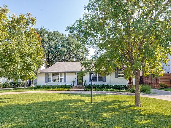 Tastefully updated mid-century ranch and ideally located in the heart of Preston Hollow between Preston Rd. and Edgemere, this one level home is situated on a wide 80 ft. frontage treed lot. With four bedrooms and four full baths, two living and two dining areas, the open floor plan and split bedroom arrangement offers versatility and comfortable living and is conducive for entertaining. Amenities include hardwood floors throughout, stainless and granite kitchen, granite and marble baths, freshly painted, designer lighting, and auto gate across driveway. The professionally landscaped and fenced backyard offers an outdoor living area with arbor and TV. Amazing opportunity to reside in a very sought -after neighborhood, Preston Hollow.