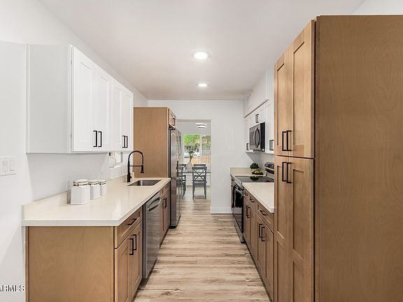 Amazing opportunity to own this beautifully renovated residence in Glendale! This fully fenced home offers carport parking, a low-maintenance front yard, and a cozy front porch that welcomes you in. Find a perfectly flowing living & dining room featuring wood-look flooring, abundant natural light, and fresh soft paint throughout that creates a warm and inviting ambiance. Galley kitchen comes with recessed lighting, stainless steel appliances, plenty of cabinets, and sleek quartz counters. Impeccable primary bedroom provides sliding glass doors leading to the back patio. Spacious backyard with a covered patio has plenty of room to add a pool or create your dream outdoor oasis. Don't let this turn-key abode slip by!
