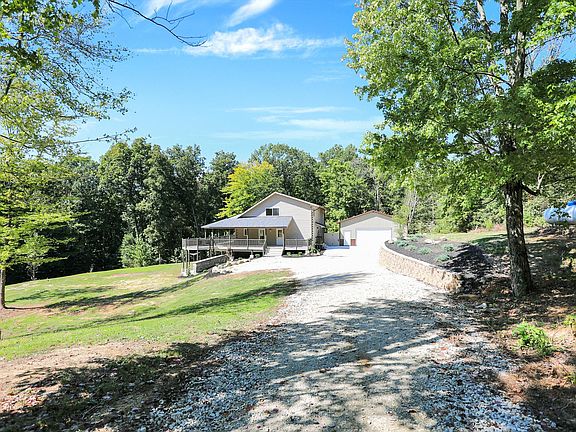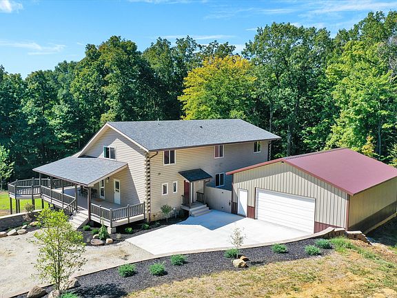 Rural Paradise - 15 Minutes from Bloomington, IN. Welcome to your dream retreat! This one-of-a-kind property offers over 12 acres of breathtaking landscape featuring rolling hills, mature woods, and over 300' of lakefront on Twin Lake. A perfect escape from city life, this rural haven provides both tranquility and convenience. This serene estate features a charming Scandinavian-inspired contemporary Tin and Timber log home, built on a highly efficient Nudura Insulated Concrete Foundation (ICF). This sleek and modern layout includes an extraordinary wrap-around deck, perfect for enjoying panoramic views. The main level boasts a spacious primary suite with a spa-like ensuite bathroom and a private balcony to enjoy peaceful mornings or relaxing evenings. This 4-bedroom, 3.5-bath home has plenty of space for family and guests, with cozy living areas, modern finishes, and warm wood accents throughout. For those needing storage or hobby space, the property includes a 32x30 sq ft garage and a massive insulated 60x40 pole barn, ideal for equipment, vehicles, or a workshop. Whether you're seeking a weekend getaway or a full-time residence, this tranquil retreat is your gateway to peaceful living, all while being just minutes from the vibrant heart of Bloomington.