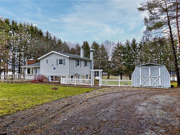 3 Bedroom 2 Bath Farmette. This property has much to offer with 1656 sf home on 15.4 acres of which 10 is tillable and 1/2 acre stocked pond w float and dock. Property also offers a 30x30 heated 2 car garage, 30x30 horse barn w stalls, 28x40 heated workshop, 32x40 pole barn for storage, 2 sheds, and 30x96 greenhouse ready to go. Country setting near Seneca Lake.