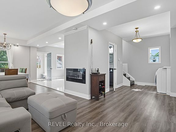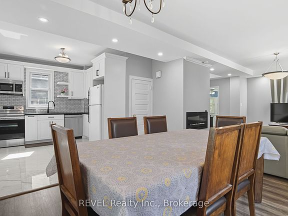 This charming two-story residence, just minutes from the breathtaking falls, has been meticulously modernized and is move-in ready. Step into the inviting sunroom/foyer, which leads to a spacious open-concept main floor area that seamlessly connects the living, dining, and kitchen spaces. The sleek white kitchen boasts stainless steel appliances and elegant quartz countertops. The large and airy living and dining rooms feature a stunning fireplace and new windows that fill the space with natural light. Convenience is key with a main floor 2 pc bathroom and laundry room equipped with brand new washer and dryer.Upstairs, you'll find a primary bedroom complete with a luxurious five-piece tiled ensuite, featuring a separate shower and a standalone tub for ultimate relaxation. Two additional generously sized bedrooms share a beautifully designed four-piece bath with a double sink vanity.A separate side entrance leads to an unfinished basement, providing ample storage space, and waterproofing has already been completed for your peace of mind. The property includes a detached garage, a brand new wooden deck, and a spacious fully fenced yard.Situated in a fantastic location on a quiet street, this home is a great investment in a vibrant tourist area. You're within walking distance to Lundys Lane, Niagara Falls, and the casino, with wineries, golf courses, and major highways just a short drive away.