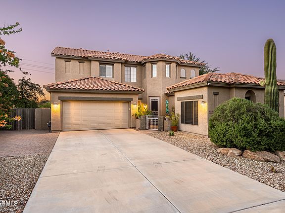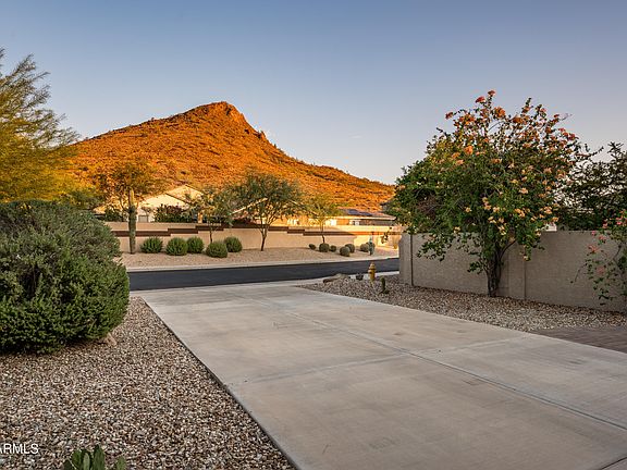 Nestled within a rare and coveted gated neighborhood in North Phoenix, this exceptional 5-bedroom home offers a luxurious retreat on a sprawling quarter-acre lot. The property's highlights are nothing short of extraordinary, including a pebble tec pool with a bubbling rock waterfall, affording you the ultimate relaxation and entertainment space. Beautiful mountain vistas grace every direction, creating a picturesque backdrop for daily living. The main-level bathroom has been tastefully remodeled with a new shower and flooring, while the entire interior has been recently painted, providing a fresh and inviting ambiance. The kitchen is a chef's dream, featuring high-end stainless steel GE and Bosch appliances. A spacious covered patio, dog run, and 20' raised vegetable and herb garden with drip irrigation complement the outdoor living experience. Throughout the home, elegant shutters add both style and privacy. Plus, you'll find an oversized 2-car garage with ample room for storage, adding to the convenience of this property. This is truly a rare opportunity to embrace the beauty and tranquility of North Phoenix's finest gated community. Don't miss your chance to call this exquisite property home.