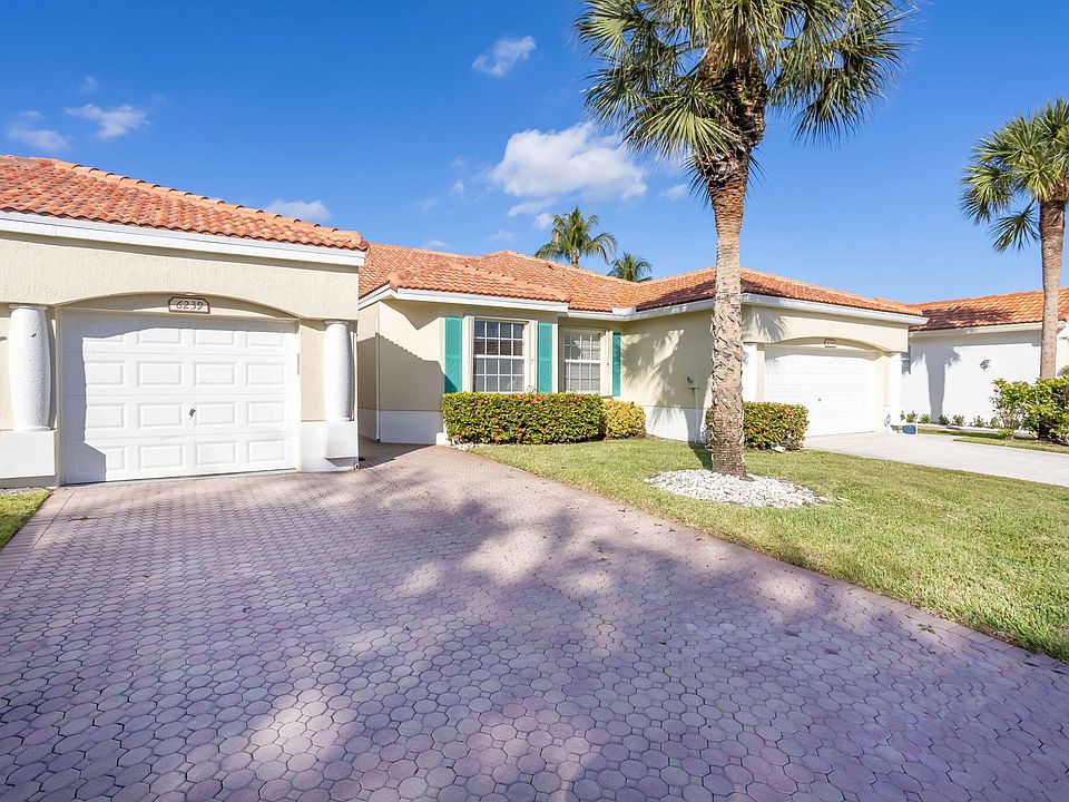 Discover lakeside living in this well-maintained 2 bedroom, 2 bathroom villa located in lovely Floral Lakes. The home features a NEW ROOF installed in 2023, newer water heater (2021), open floor plan, neutral tile throughout, and vaulted ceilings. This villa offers a nicely appointed kitchen with 42 in. cabinets, equipped with SS appliances and pantry. The screened lanai is set against the backdrop of a beautiful lake view, providing a peaceful and scenic environment, ideal for entertaining. Floral Lakes is conveniently situated near local shops and restaurants. Pet friendly and LOW HOA!