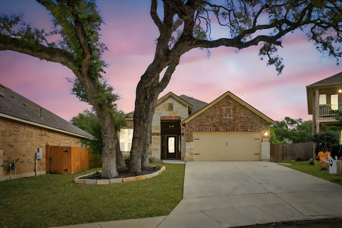 Elegant finishesGas stoveSecure gated neighborhoodMature oak treesOpen floor planStainless steel appliancesTwo spacious primary suites