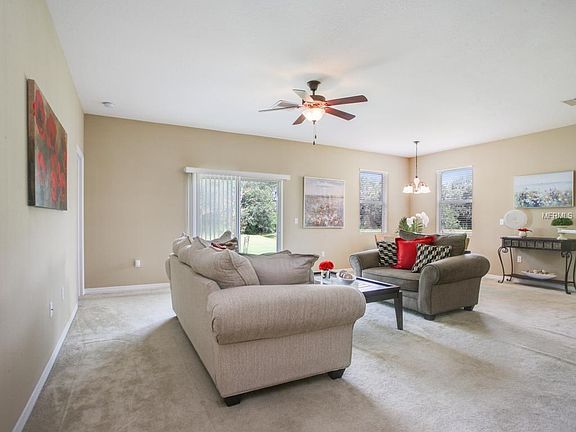 Warm and inviting home featuring 3 bedrooms and 2 bathrooms on a conservation with pond views in the lovely community of Oak Creek in Wesley Chapel! Fantastic curb appeal, with upgraded stone front façade and lush landscaping. This home is ideal for entertaining because of its open style floorplan. The kitchen offers rich maple cabinetry, stainless steel refrigerator, tiled backsplash, pantry, plus a convenient breakfast bar thatâs perfect for casual dining. There is also a dining room/nook with fabulous nature views. The bright, open family room boasts spectacular views of the conservation and pond through the sliding glass doors! Enjoy the gorgeousFlorida weather on your covered lanai and private backyard! Oak Creek is a resort-style community that offers a pool, playground, basketball courts, 2 gazebos, and a dog park. It is conveniently located near top-rated school, Shops at Wiregrass, Florida Hospital, state college, popular dining, and entertainment. Home Warranty Included! Low HOA! Welcome Home!