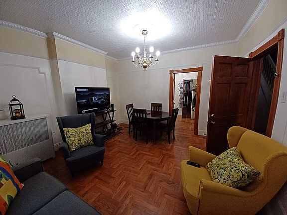 The 2nd floor is a Spacious 6-room Unit with potential to be utilized as a 3-4bd Unit and includes 1 Full Bath, Ample Storage Space, and Backyard Egress. The 1st Floor is a Charming 5-room, 2-3bd Unit with 1 Full Bath and Direct Backyard Access. Both Units also boast Parquet Flooring, Tin Ceilings and Multiple Entrances into the Hallway. The Semi-Finished Basement includes External Entrances in both the front and back of the Building, Washer and Dryer Connections and a ¾ Bath. The Backyard provides a great opportunity for relaxation and family gatherings and can be accessed by both Units and the Basement either by Direct Access or Egress.