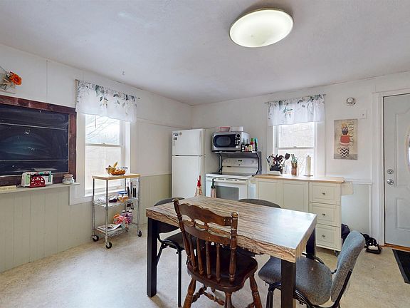 Covered front porchLightly wooded sloping backdropSeparate dining roomBig roomsThree comfortable bedroomsGenerously sized kitchen