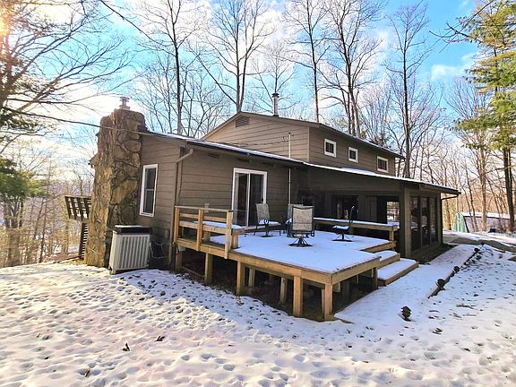 Live like you're on vacation everyday in this turn key, fully furnished split level home in Hide A-Way Hills! This 4 bed/2.5 bath home is nestled among the trees on just under 1 acre. Home offers sitting room, kitchen, dining room & 1/2 bath on entry level. Great room has vaulted & beamed ceilings, wood stove & access to both decks. Upstairs, the primary suite w/bath has 2 large closets & 3 add'l bed/full bath. Home also has large screened porch & 1 car attached garage. Hide A-Way Hills is a gated community w/24 hour security. Community has multiple lakes for boating, fishing & kayaking. Community also has golf, pool, tennis, pickle ball, disc golf, ORV trails, gun range, organic garden, beach, barn, lodge, clubhouse, brewery, chapel & fitness center. Plenty of amenities for all ages!!