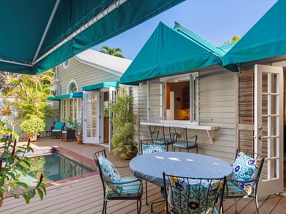 LOCATION CUBED! Located on one of Key West's most charming, quiet and private lanes, this home is perfect for entertaining guests with 2 separate guest cottages, flanking a 12' x 18' pool. The cottages have their own entry door from the off-street parking space through a faux wall, allowing for privacy for hosts and guests alike. The vaulted ceilings in the main house and in the cottages create an airy sense of space. The verdant outdoors and the sun's shifting light are brought inside through the large windows and French doors. There's also a kitchen pass-through to the deck and pool area. Everyone loves an outdoor shower. Right in the heart of Old Town, and convenient for a leisurely stroll or a brief bike ride to all downtown and the seaport has to offer. Tranquil and welcoming--a must see!