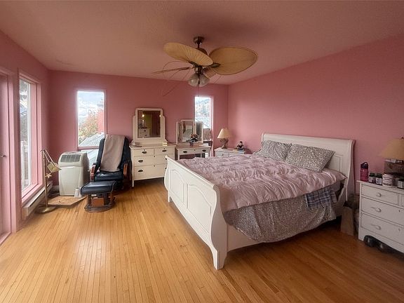 Front-facing bay windowsPrivate upper primary suiteStained-glass accentDouble mirrored closetsPatio doorsSweeping north valley viewsWindow seat