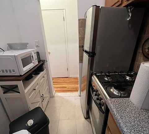 Large renovated studio apartment with closet. Natural sunlight with a full bath & full separate kitchen.