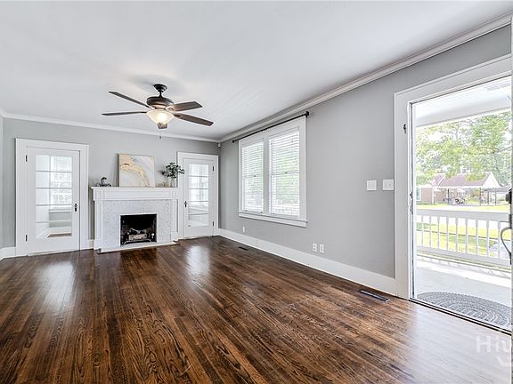 Welcome to this gorgeous mid-town bungalow in the amazing Ardsley Park area! This 4-bedroom, 2-bath, 2,323 sq. ft. home blends timeless 1940s character with modern updates. A beautiful covered front porch invites you into the spacious living room featuring a cozy gas fireplace and gleaming hardwood floors. Entertain in the separate dining room, which flows into the updated kitchen and a cheerful breakfast nook filled with natural light. Both bathrooms have been thoughtfully updated, complementing the home’s original charm. The primary and guest bedrooms are downstairs, with two more bedrooms and a full bath upstairs. Enjoy a fully fenced yard with a brick paver patio-perfect for outdoor gatherings. The detached 1-car garage and driveway provide ample parking and storage. This home offers walkable, tree-lined streets and access to parks, dining, shopping, and downtown. Don’t miss your opportunity to own a piece of history with all the modern conveniences!