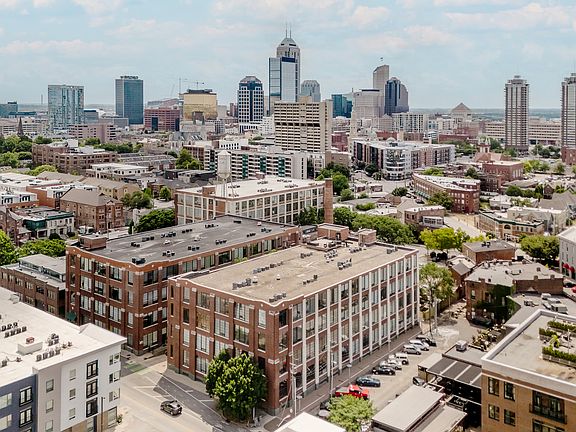 Live in the heart of downtown Indianapolis in this stylish and flexible second-floor loft in the iconic Mill No. 9 building. With soaring 14-foot ceilings, exposed ductwork, and expansive industrial-style windows, this home combines authentic urban character with modern upgrades for effortless city living. The open-concept living space features a striking electric fireplace, adding both warmth and contemporary flair. Original hardwood floors and designer light fixtures throughout give the loft a polished, upscale feel. The kitchen is equipped with newer stainless steel appliances and opens seamlessly to the living area-ideal for entertaining or everyday living. The second bedroom is outfitted with a Murphy bed, offering exceptional flexibility to use the space as a guest room, home office, or both. Smart storage solutions include generous walk-in closets, large pantry, coat closet, and in-unit laundry room. You'll have two deeded parking spaces-one in the garage and one in the surface lot-and access to a shared rooftop deck with skyline views and a landscaped courtyard with a gas fire pit and grilling area. Step outside and you're just moments from the Cultural Trail, Mass Ave, Bottleworks District, and some of the city's best dining, shopping, entertainment, and sporting events. With grocery stores, coffee shops, and nightlife just blocks away - the walkability is unbeatable.