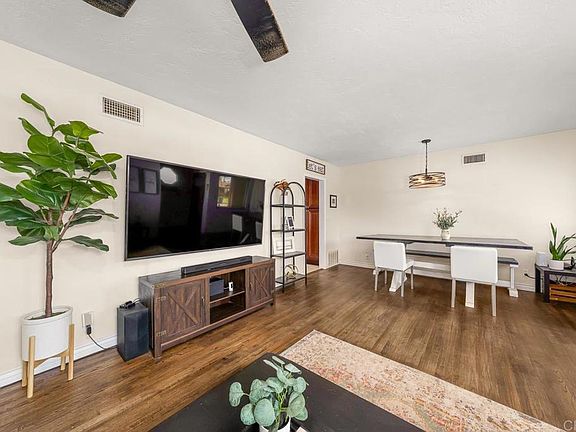This meticulously maintained single-family home, ideally situated in the heart of Escondido, perfectly blends timeless charm with modern upgrades, creating an ideal space for comfortable living. Offering 3 spacious bedrooms and 2 beautifully remodeled bathrooms, this home provides ample room for both family and guests. The bathrooms showcase sleek, contemporary finishes, merging style and functionality seamlessly. Spanning approximately 1,038 square feet, the interior boasts an open and airy floor plan, with the living room bathed in natural light, creating a warm and inviting space for both relaxation and entertaining. The updated kitchen is a chef’s dream, featuring stainless steel appliances, including a gas range, microwave, dishwasher, and refrigerator. Elegant granite countertops add both durability and beauty, making cooking a true pleasure. The home’s combination of tile and wood flooring enhances its aesthetic appeal, while ensuring effortless maintenance. Enjoy year-round comfort with central heating and air conditioning, paired with energy-efficient dual-pane windows that help maintain ideal temperatures throughout the year. Set on a generous 6,098 square foot lot, the property offers expansive outdoor space, perfect for various activities. The large backyard is an entertainer’s paradise, ideal for family gatherings, barbecues, and outdoor recreation. A covered patio provides a shaded retreat for relaxation, while a storage shed in the backyard is perfect for gardening tools and outdoor equipment. The home includes a single-car attached garage with an integrated laundry area featuring a washer and dryer. The extended driveway offers additional parking for multiple vehicles. Eco-conscious buyers will appreciate the energy-saving solar panels, which help reduce electricity costs and promote sustainable living. Located in a well-established, friendly neighborhood, this home is within close proximity to schools, parks, shopping, dining, and major roadways, providing easy access to all Escondido has to offer. This home is a true gem, offering an exceptional blend of comfort, style, and practicality. With its modern amenities, energy-efficient features, and prime location, this move-in-ready residence offers a rare opportunity in today’s market. Don’t miss your chance to make this remarkable home yours!