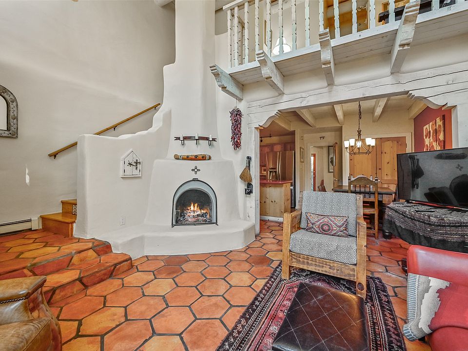 Bright and filled with light, this 2 bedroom 2 bath condo offers an excellent location for all that Santa Fe has to offer yet a very quiet neighborhood in South Capital. Brimming with many southwest features such as vigas, kiva fireplace, adobe walls with curved accents, talavera tile in the bathrooms, Saltillo tile and oak floors. Front courtyard with adobe walls for privacy. And rear patio has coyote fencing for privacy. Extra storage on the back patio. Las Brisas takes care of the exterior of the home and the roof. New TPO roof as of summer 2025. New boiler and hot water tank in 2022.