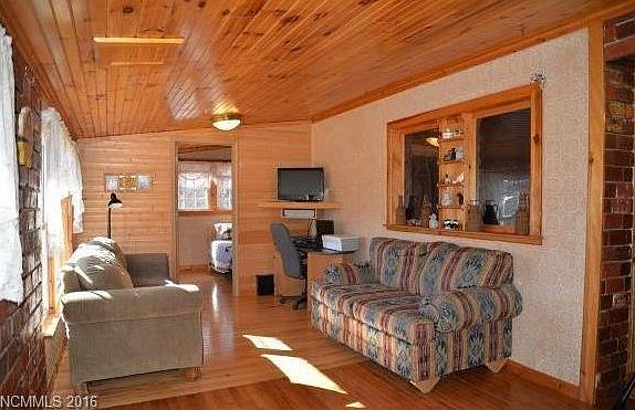 Large Mills River home with over 2,600 Sq. Ft. Lower level one bedroom suite for family or guests has its own entrance and car port. Extra room on main level for a den and sleeping room. Custom cabinets and built-ins in Kitchen. Some Tongue and groove ceilings and many custom made wood features throughout the house. Lower level suite heated by non-vented gas logs. Detached 1,000 Sq Ft. Garage/Workshop.