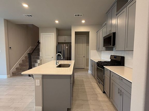 4 BED PLUS 3.5 BATH townhouse in the gated community of Normandy Village. Contemporary open concept floorplan provides beautiful wood-like tile floors for kitchen and the being adjacent dinner and living area. The kitchen features quartz counters, stainless appliances, a gas cooktop, and a refrigerator included. Gorgeous guest suite with full bath DOWNSTAIRS can be second primary bed with loads of natural light, which can't be found often. Ensuite primary upstairs is a spacious retreat and can accommodate large furnishings as well as the over-sized bath and walk-in closet. The separate utility room comes equipped with a full-size washer and dryer. The 3rd & 4th bedrooms also offer spacious & private spaces for kids or guests. The fenced backyard is sizeable for a townhome and family activities. Easy access to major highway I-35, 121 and an easy commute to hospital, grocery and lake.
