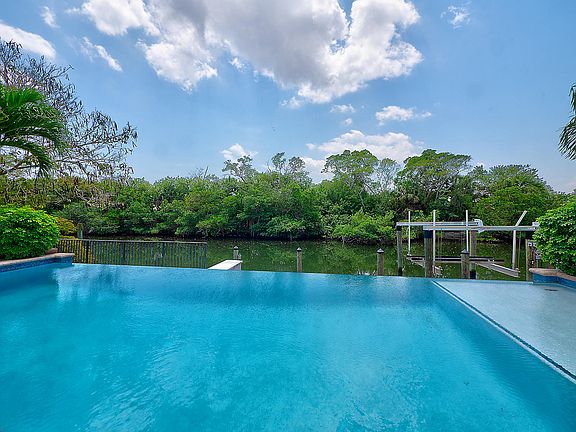 Completely New Build in 2015. Sophisticated Design Curated for Island Living, Meticulously upgraded with modern features, very private central No Palm Bch location. 75 Ft Water Frontage can accommodate multiple boating opportunities, currently outfitted with a 40' Dock & 10,000 lb Lift. 5/3/2 CBS const, Flat Tile Roof, Impact Windows/Doors, Natural Light, durable 24'' Porcelain floor tiles, Oversized Modern Kitchen, Gas Stovetop, Dbl Wall Ovens, Warming Drawer, separate Refrig & Freezer, Calcutta Marble tops, Elevator, Outdoor Kitchen w/builtin BBQ, Pool Bathroom Access, modern Infinity edge Pool/Spa/Sundeck, Large Patio space with endless entertaining options present themselves with this extraordinary property. Location, Privacy, New Modern Design, Turn key ready to go, make it your own!