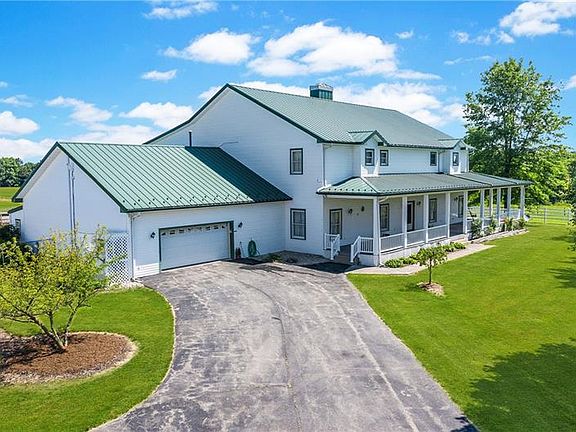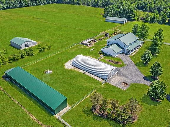 Stunning estate boasting 33+ acres. 5 Bedroom, 5.5 Bath over 6000 square ft. home is perfect for COVID Blues or someone looking to start a winery, horse show facility, wedding venue, cattle farm, dairy farm, honestly, anything! With 4 add'l buildings on site one was for horses, cows, equipment & vehicles. Terrain is completely level & 2 places that are not cleared are the sm. orchard & the tree lined drive to the gorgeous farm house. Nearly 3/4 of this house surrounded by a composite deck. Great flow through out huge first floor & kitchen that could fit over 100 people & brilliant hardwood floors, solid cabinetry, built-ins and woodwork flow through this home. The master bedroom offers walk-in closet, walkout access to the huge balcony, a large tiled bathroom w/ jetted tub. Upstairs also offers a family room & hobby room. Basement completely finished with multiple rooms prev. used as bdrms. Wet bar, nice bthrms & lrg gameroom. Majority of property fenced w/ so much more to offer.