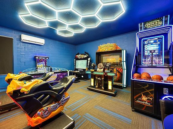 Welcome to your Ultimate Dream Retreat in Reunion Resort! Experience luxury and entertainment in this turnkey vacation rental property. This beautiful modern 10-bedroom, 9.5-bath masterpiece every detail was designed for comfort, style, and unforgettable experiences. The open-concept living area features elegant leather seating, striking wall art, and a gourmet chef’s kitchen with double appliances—two stoves, refrigerators, dishwashers, and microwaves. Dine in style at the grand table for twelve or relax at the sleek wet bar nearby. Step outside to your private resort-style oasis with an extended patio, luxury cabanas, outdoor kitchen, dining area, smart TV, and a heated spillover spa. End your evenings by the fire pit under the stars. Inside, entertainment awaits with a high-tech game room, movie theater with leather recliners and 150” screen, and themed bedrooms that transport guests to outer space or Jurassic adventures. Each of the remaining bedrooms offers elegant finishes and peaceful comfort. With smart-home features, security system, and dual laundry areas, this property blends convenience with sophistication. The property is located in one of the best locations in the area. Minutes from Disney world and other attractions plus various shopping and restaurant options are close by. Don't miss out on this opportunity have your Realtor make an appointment to schedule your private tour today and discover one of Reunion Resort’s premier luxury homes! **Transferable Membership**