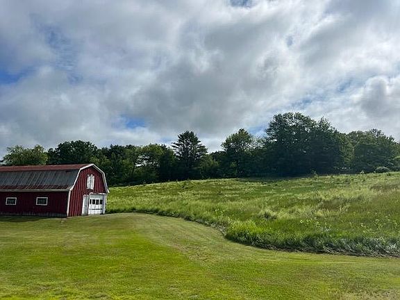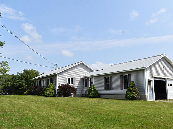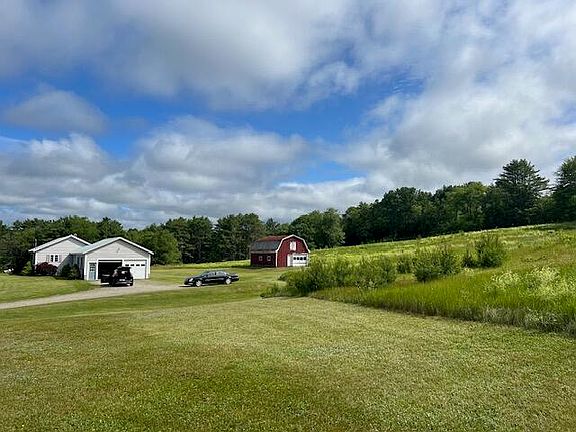 6.7 acres of gorgeous fields surround this ranch style home. One level living with 2 bedrooms and 1.5 bath home has sunshine all day long. Drive right into the two car garage then either enter the home or a few step down to the basement level. Perfect for doing projects in the lower level of the property. The spacious eat in kitchen has plenty of work space for the cook in the family and the large window overlooks the front lawn and bathes the room in sunlight. Carpeted living room with den beyond for those who work from home. Two bedrooms with lots of closet space and a full bath complete with washing machine and door to rear yard round out the main level. The lower level has a 1/2 bath and family room as well as plenty of shelving for all your off season goods. The home is heated by a hot water furnace as well as a wood boiler.