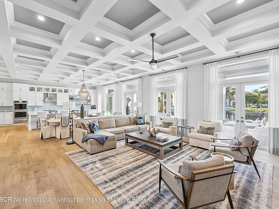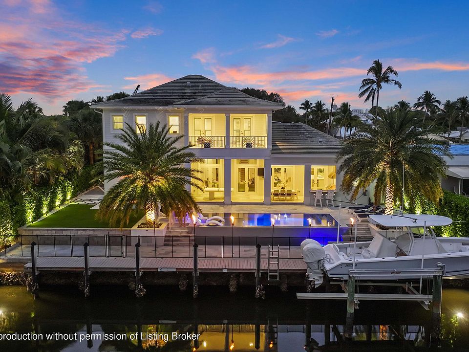 STUNNING 4 BR/ 6.1 Bath Furnished Direct Waterfront Home with Dock & Direct Ocean Access. Professionally designed & decorated. This British West Indies-style home is an absolute masterpiece. The open-concept main living area features beautifully coffered 12-FT ceilings, hardwood floors throughout, impact windows/doors, electric shades in the living room and master bedroom. The chef's kitchen features JennAir stainless steel appliances, a gas range, double ovens, a farmhouse sink, an oversized island, 2 wine refrigerators, and a massive pantry. Both upstairs and downstairs laundry rooms and master suite is on the main floor. Step outside to your private paradise. The resort-style infinity pool and spa with a vanishing edge and sun shelf are surrounded by elegant marble decking... ...The pool features a glass bead finish, a saltwater system, and is complemented by a cabana bath and outdoor shower. Entertain effortlessly with a summer kitchen, fire feature, gas tiki torches, and lush tropical landscaping combining natural grass and turf. Enjoy 90 feet of waterfront with a 16,000-pound boat lift, dock lighting, and ramps for easy boat access. With no fixed bridges and space for up to a 65' boat, this property is a boater's dream. Additional features include: Sophisticated security system, upgraded driveway pavers, and exterior lighting package. Prime Location - Just steps away from the North Palm Beach Country Club.