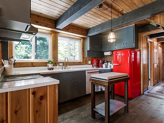 Discover the nostalgic Almanor A-Frame, a charming mid-century a-frame cabin with the ambiance of a treehouse and a view of the lake. This retreat is part of the exclusive Lake Almanor Country Club; as our guest, you'll enjoy complete access to private beaches and recreational areas within the club. Built in the 1960s, the 1280 square foot cabin features Scandinavian design wood work, exposed beams, real hardwood floors and nostalgic wood paneling classic to the mid-century era. The cabin has three levels, each with a bedroom and two full bathrooms. The a-frame has been recently remodeled top to bottom with guests comfort and safety in mind. Available monthly fall 2025 thru winter 2026, $4500/mo with $4500/deposit. All utilities included.