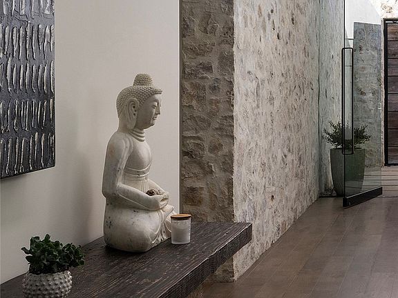 Ocean viewsGolden evening sunsetsBathed in natural lightPrivate garden patioSpa-worthy bathLayered in textureFloor-to-ceiling glass doors