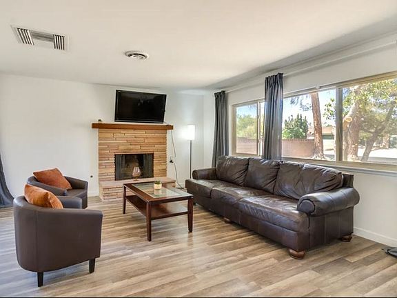 HALF OFF THE FIRST MONTHS RENT! 3, 6, 9, and 12-month rental. FULLY FURNISHED $2,900.00 NON-FURNISHED $2,599.00 1,786 sq. ft. Four bedroom, two bathroom house. U Shape kitchen with laminate flooring, marble style Formica countertops, built-in microwave, and stainless steel appliances open to the dining room, which has sliding doors to a covered patio. Laminate flooring throughout, lots of built-in storage located in the hallway area. Tile flooring in the guest bathroom, new vanity, and tile tub and shower marble surround. The primary bedroom has sloped ceilings, a walk-in closet, and an en suite which has a new vanity and marble tile shower surround. Spacious bedrooms have laminate flooring and lots of natural sunlight in each bedroom. Washer/dryer provided but not warranted. Side-by-side refrigerator with bottom freezer provided but not warrantied Covered patio and side yard parking. The owner covers Landscaping and the internet. Large backyard is great for entertaining. Cinder block wall surround. Please note there will be an automatic $300 deduction from the security deposit to Wash and make the bedding attire for four bedrooms.