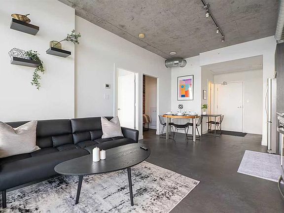 Sun-drenched south-facing residenceExpansive floor-to-ceiling windowsIndustrial loft-inspired designCentral air conditioningOpen-concept layoutSpacious primary bedroomGlossy metal upper cabinetry