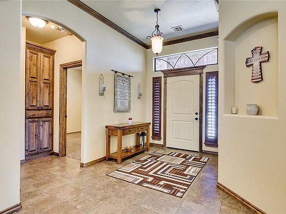 Fabulous 3 Bedroom +Study on a cul-de-sac street in beautiful Lake Woods addition. Enjoy spending time outdoors on this over-sized lot w/extended patio, wood-burning fire pit, large outdoor storm shelter, dog run & outbuilding w/electricity. The homeowners love the many custom upgrades & subtle details in this home such as designer paint colors, rounded corners, arched doorways, niches, crown molding, granite countertops throughout & pendant lighting. Engineered wood floors in the newly painted office w/French Doors. Spacious Kitchen w/lots of counter & cabinet space, pantry, casual dining space & breakfast bar. Master bedroom w/built in desk & ensuite bath,dbl vanities, whirlpool tub and walk-in closet. Redesigned front brick entry w/keystone, whole house guttering, Vivent Security system w/Co2 Protection & 4 Cameras. High security screen door. Split plan, 3 Car garage, Wired for sound. HOA offers Nature Park, walking trails, a private/stocked 6 acre lake & 15 acres of common area!