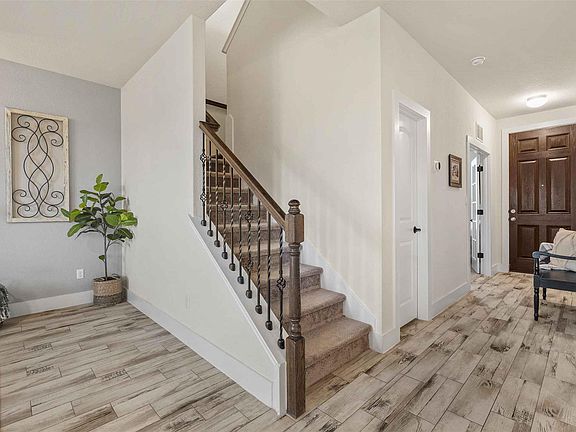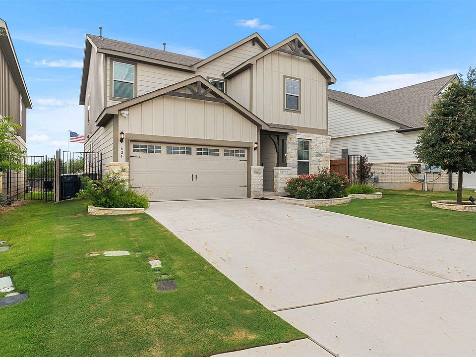 PRICE IMPROVEMENT! Charming and highly upgraded 4-bedroom, 2.5-bath home in the desirable Rancho Sienna community, zoned to acclaimed Liberty Hill ISD. The primary and two secondary bedrooms are upstairs, with a 4th bedroom downstairs that would also make a perfect office or flex space. This meticulously maintained home features an inviting open-concept floor plan, perfect for entertaining and everyday living, with over $62,000 in premium upgrades throughout. Step outside to a custom extended patio, ideal for summer grilling and relaxing evenings by the built-in BBQ, fire pit, and ambient café lighting. Enjoy stunning views of the surrounding hills from both the front and backyard spaces. Contemporary WiZ color-changing LED lights on the first floor and front of the house, plus Philips HUE landscape lighting, add a touch of modern flair and elevate curb appeal. Inside, designer touches include a beautiful custom shiplap fireplace/TV wall, farmhouse-inspired shiplap accents in the primary suite, and ceramic tile flooring in all main living areas, bathrooms, and laundry. The spacious bonus room provides the perfect setting for family movie nights or game gatherings. Located at the end of a quiet cul-de-sac, this home offers a safe environment for children to play and ride bikes, with an on-site elementary school close by. The finished garage is a standout, featuring an attic build-out with flooring and pull-down ladder, epoxy floors, ceiling-hung storage racks, a full custom tool bench with extra storage, and a dedicated exterior power center for holiday decorating, which helps power the largest Christmas Light Show in Central Texas; which is included. Enjoy proximity to community parks, trails, neighborhood amenities, and all the benefits of the highly sought-after Rancho Sienna lifestyle. This move-in-ready gem combines modern amenities, thoughtful upgrades, and a premium location in Liberty Hill ISD—the perfect place to call home