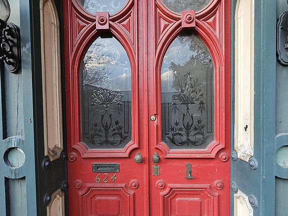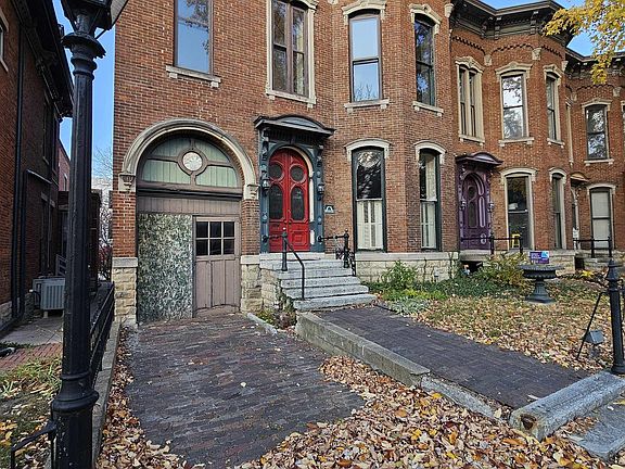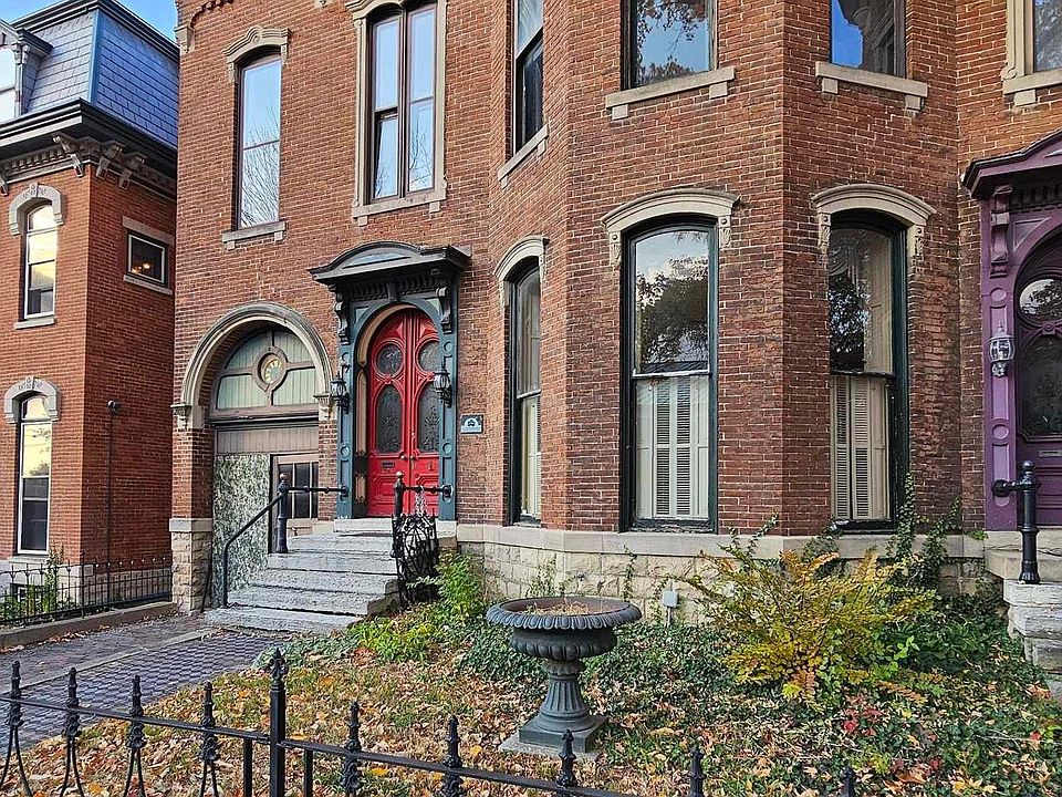 A rare opportunity to own one of downtown’s distinguished historic rowhouses. The row of homes was built in 1890 by Ira Howe for his family and 624 stands as the largest residence and the only one with an attached carriage house. The grand double front doors, featuring original etched glass imported from France, create eye-catching curb appeal. On the front sidewalk, an original iron hitching post—still proudly in place—offers a glimpse into Victorian life. Step inside this preserved, protected landmark and take in the authentic 19th-century craftsmanship: ornate plaster moldings, stunning grand fireplaces, hand-crafted ceiling medallions with original fixtures and lanterns and of course, a grand staircase. An informal kitchen with emerald-stained-glass accents and a matching ornate tin ceiling adjoins a classic butler’s pantry, back staircase. The upper level bedrooms are connected by built-in storage wardrobes—details that transport you to another era. Escape to a whimsical, gated private garden out back surrounded by a brick wall with decorative iron details. Don't miss this extraordinary Italianate residence in the heart of downtown where shopping, dining and entertainment are just steps away. Broker owned.