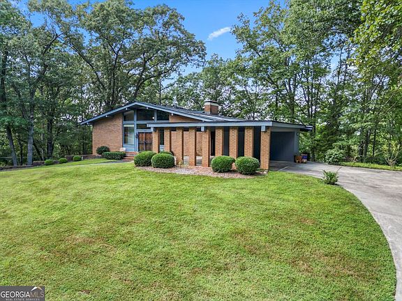 A Midcentury (Manchester) Time Capsule...we don't limit ourselves to only the fabulous Midcentury homes in ATL. We go to where the good-good is, and this time that search for the good-good took us to Manchester GA. You say you don't know where Manchester is? Well, read on my friend bc you will soon find yourself wishing you were already there. Built in 1968 and owned by the same couple for nearly 60 years, this beautiful residence is the textbook definition of pure, unadulterated, classic MCM architecture. Perched at the top of a secluded hill & built into the base of Pine Mountain Ridge, living here feels like living in North Ga Mountain country. Vistas of deep valleys, green pastures, & mountain views cradle the town of Manchester and make for some of the best hikes anywhere in GA. You think you've seen it all before, but this one is different. As you approach the property you notice the handmade zig-zag wooden fence bordering the yard. 624 is the ONLY home on the block & in the Fall & early Spring, you will be rewarded with the most fiery yellow-orange sunset views as the day turns to dark and the mountain ridge in the distance frames the setting sun. Rugged Post & Beam construction, the most *perfect* color of tannish-brown brick, & walls & walls of glass beckon you to park the car, get out, & come inside. THE ENTRY IS TO DIE FOR. Vintage wrought iron double gates open onto solid wooden double doors....opening these doors is like walking into another decade, a better life, & a new experience. A split-level wooden staircase leads you either down into a huge den/rec room with a bar & indoor grill, or up into the living room & the views you've been dreaming for every night as you search IG for your dream home. A full wall of glass, with sliders, draws you thru the living room & out onto the cantilevered deck where you realize you're 20 feet higher than your nearest neaighbor's roofline & you have COMPLETE privacy. It's possible you were so drawn to the views that you missed :: the brick wall punctuating the room which houses the minimalist fireplace, the built-in media cabinet, the new floors, and the *oh so perfectly patinated* vintage grasscloth wallpaper. The dining room, kitchen, and primary bedroom all afford you the exact same gorgeous views. The bathrooms. Not just one, but three & a half original tile baths, each one lovingly preserved: primary bathroom. IT. IS. HUGE. Walk-in shower, soaking tub, double closets, vaulted ceiling, this house had it all, decades before it circled back into style. The primary bath is literally larger than most primary bedrooms. Not even one hand-laid vintage square tile is cracked and not one single piece of grout has been lost. Two downstairs baths are equally perfect & the fixtures shine & gleam like they were installed just yesterday. Nothing cracked, nothing broken. Just pure midcentury design. What about the outside? Just as incredible. 1.5 acres. A covered porch off the kitchen. A full size workshop designed in the most fabulous Southern Gothic vernacular. Native azaleas, Japanese maples, rhododendron, poplar, oak, & ginkgo trees create the most inspiring landscape. The best part...a natural spring bubbles out of the ground and it feeds the most lush & beautiful ferns & ginger root plants that you have even seen. The next door neighbor ( whom you can't see) maintains 8+ acres of forest & tends it like a nature preserve. For 1/3 the cost of a North Ga Mountain retreat, you could own a 3BEDx3.5BATH, 3000+/- SQFT home, located less than 2 hours from ATL. A 12 minute drive to FRD's Little White House. 33 minute drive to Callaway Gardens. 22 minutes or less to the Flint River. 1 hour to Hartsfield Jackson ATL airport. Creeks, springs, hiking trails, and outdoor options all at your fingertips. There are so many details to experience. If you're curious (I know you are), come visit. It will be worth the drive. You will love it.
