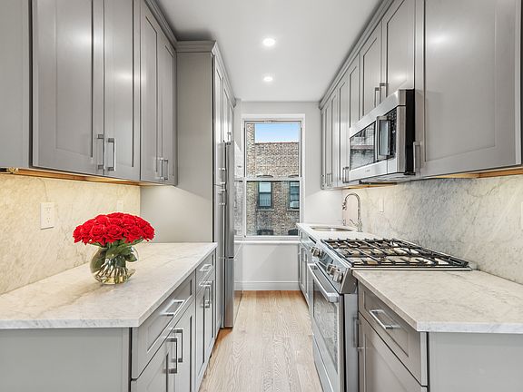 Fully renovated! Be the first to see this immaculate two-bedroom with high-end finishes and details. This charming two-bedroom features Southern exposures with garden views and the Cloisters and is on the 5th floor of this walkup building. The building is conveniently located in the heart of Inwood 1/2 a block from the A train and 3 blocks from the 1 train. Walking distance to all major shopping/restaurants, Inwood Park, and close access to 9A or I87. The apartment features new wide oak hardwood flooring, new baseboards, new doors and trim, new crown molding, recessed LED lighting, a new bathroom with marble floor and bright chrome fixtures, new kitchen. The kitchen features new cabinets, marble countertops, under-cabinet lighting, and high-end stainless steel appliances. Great closets and Washer Dryer in unit! The building features a private rear garden for all residents to enjoy. This apartment is a must-see and won't last.