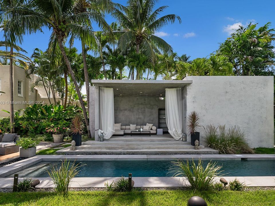 A stunning modern Mediterranean masterpiece in prestigious Mid-beach, this exquisite estate offers unparalleled luxury and sophistication. Main house boasts 3 bed/2.5 bath with additional guest house with studio + bath. The primary suite is a serene retreat with a spa-like bathroom and large walk-in closet. An entertainer’s dream with pristine salt water pool and lush landscaping creates a private oasis. Lighting, climate, entertainment and security are effortless and intuitive with state-of-the-art technology designed to elevate modern living. Welcome to the ultimate Miami Beach experience.