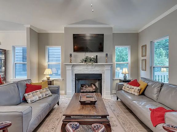 Custom-built gas fireplaceGranite countertopsLarge porchNew appliancesBuilt-in microwaveLarge dining roomCustom counters in kitchen