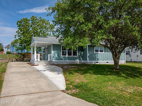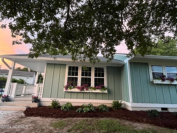 Essentially NEW 1950's era cottage in the heart of delightful Swansboro. Taken down to the studs and rebuilt. Everything is new: wiring, lighting, plumbing, HVAC system, water heater, baths with ceramic tile, kitchen with craftsman cabinets, quartz counter tops, subway tile backsplash, all new appliances. LVP flooring throughout, baths and laundry room have tile floors, all new craftsman style doors and hardware, interior and exterior. New board and batten clad exterior walls, new vinyl windows, even new floor joists. New insulation everywhere, ample floored storage in attic. Outdoor shower. Within walking distance to everything. Only 100 yards to Pirates Den Park. A must see property.