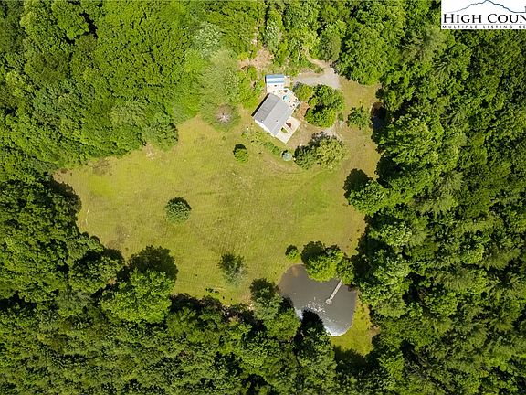 15.8 mountain acres surrounded by beautiful forested land adding a touch of total privacy. BIG open landscaped yard area accented with two ponds & all bordering Wildcat Creek ... plenty of play room for the entire family to enjoy the views of nature. Private driveway leads to a spacious three story farmhouse design home with over 3,000 sq. ft. under roof. Rocking chair covered front porch with a huge side deck that includes a fire pit to enjoy on those cool evenings. Primary suite is on the upper level with stone fireplace, vaulted ceilings wet bar and open living room for family gatherings. Main level with den, kitchen, bedroom, bathroom, and formal dining room leading to the side deck for outside dining. The lower level has a nice spacious bedroom with full bath, garage and separate workshop space. Adjacent to the house you have the perfect Artist Studio building to house all the extras & next to one of the ponds is a garden house. This wonderful property can serve as the ultimate year-round or vacation estate for the entire family to enjoy. Minutes away from the Blue Ridge Parkway, Boone, West Jefferson, Wilkesboro and all that the Blue Ridge Mountains have to offer.