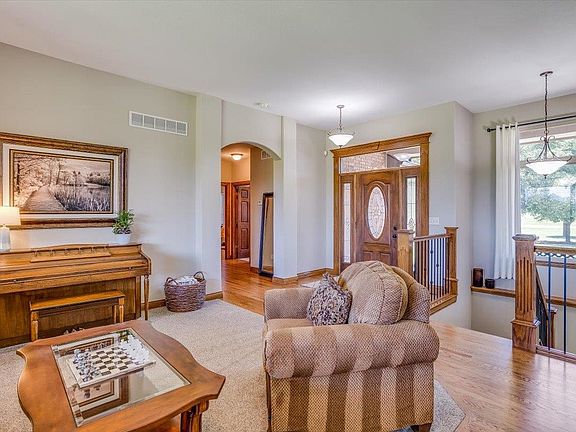 Welcome home to your beautiful country oasis. Located in the highly coveted, Renwick district this home truly has it all. Boasting five bedrooms, and four bathrooms this custom-built home has an abundance of room. Throughout the space, you will enjoy natural sunlight and tasteful finishes. The main floor showcases an open floor plan, hardwood floors, solid surface counters, main floor laundry, a sizeable pantry, and much more. The main floor also features a spacious primary suite complete with a large bathroom and closet. The primary bathroom has a large soaker tub as well as a separate room for the shower. The walkout basement has great windows to enjoy the view outside. Downstairs you will find more open spaces, stamped concrete floors with radiant heat, a large storage room as well as a storm shelter, 2 more bedrooms, and a bathroom with great storage. Outside, you can enjoy the view of wide open spaces and your pond all from your covered, east-facing deck. To top it all off enjoy the 36x50 shop which is plumbed for radiant floor heating and has attic storage. So many great things about this home, schedule an appointment to see it yourself! **Please note that there is an additional 5-acre lot adjacent to the home being offered exclusively to the purchaser of this property for an additional $75,000. Please ask agent for more details.