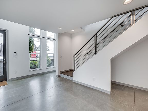 Stylish, cozy, easy-living 2 bdr end-unit townhome with loads of natural light & huge windows. Located in hip, centrally located Georgetown. Gorgeous concrete floors & vaulted ceilings welcome you on the lower level where you'll find a terrific flex space, bedroom & full bath. Open plan main floor w/ lg gourmet kitchen, ample counter space, rolling custom island, dining, living space. Venture up the stunning, floating wood stairs to the private primary bedroom & huge luxury bathroom w/ double sinks, walk-in shower. Spacious rooftop deck w/ epic views of Mt Rainier. Mini-splits A/C all levels. Reserved off-st prkg space.