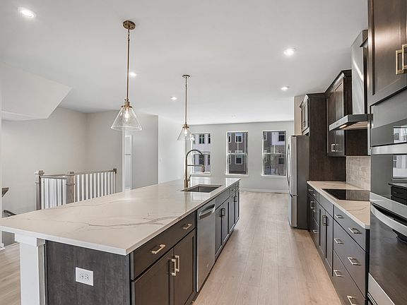 This stunning residence blends contemporary design, soaring spaces, and elegant finishes across three beautifully crafted levels. The main floor features an open-concept layout with vaulted ceilings that flood the space with natural light. The designer kitchen boasts quartz countertops, stainless steel appliances, and a large island that flows effortlessly into the dining and living areas perfect for entertaining or everyday living.