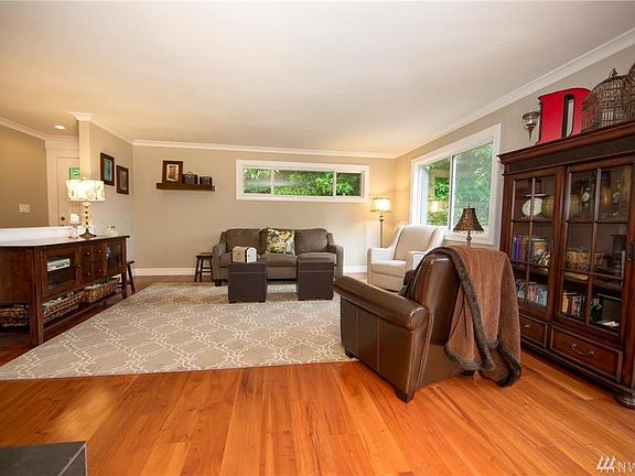Beautifully remodeled spacious and private 4+ bedroom home! Quality kitchen updates featuring rich hardwood floors, granite counters and stainless steel appliances. Custom slate living room fireplace and crown moldings. All 3 full bathrooms are remodeled including the 5 piece master bath. Downstairs has a 2 sided fireplace making the family room and bedroom cozy, plus the office, home gym, and storage! Quiet cul de sac with Northshore Schools. New roof, new windows, new siding. Ready to move in!