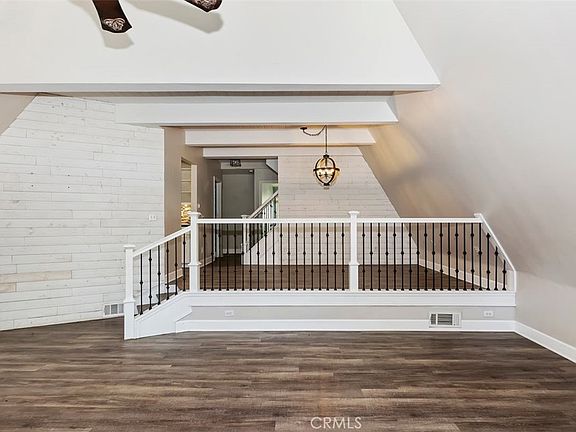 The large living room is perfect for entertaining with a step up to a formal dining area. Great for parties!