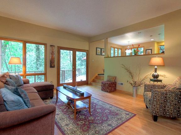 Beautiful contemporary home surrounded in a peaceful Zen setting. This home features 3 bedrooms, 3 baths, Large open gourmet kitchen W/eating area, Formal dining room, beautiful master suite W/skylights & walk-in closet, large Theater room or family room, bonus room/den W/skylights, tons of storage space, oversized decks for entertaining with friends & family, very low maintenance yard, double car garage, lots of off street parking...only a few minutes walk to Terwilliger trai...